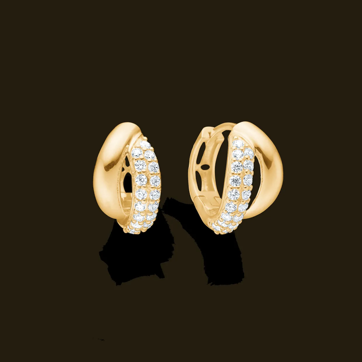 Eksklusivitet møder ynde i Celia øreringene fra MADS Z – et elegant design i ægte 8 karat guld, smukt prydet med funklende sten, der fanger lyset med en subtil og sofistikeret glød.
