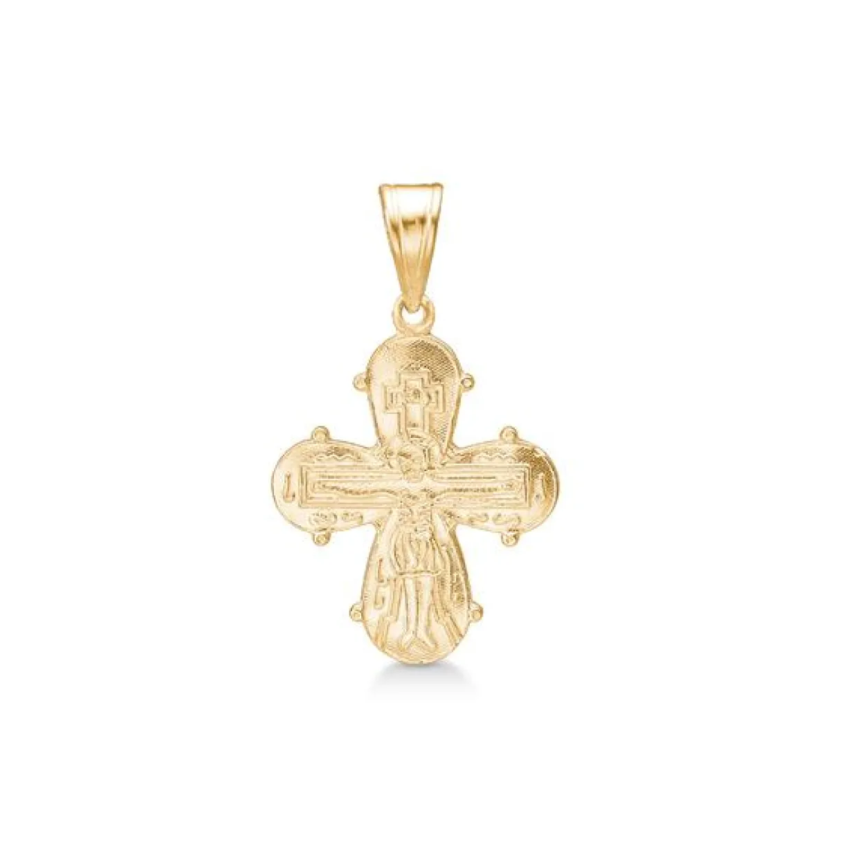 Dagmarkorset er fremstillet i 14 karat guld og blank bagpå.