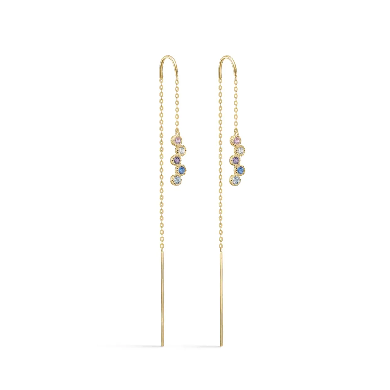Det feminine hængende design giver let bevægelse og elegance. De farvede zirkonia tilfører et moderne twist til det klassiske guldsmykke og gør dem ideelle til dig, der ønsker et smykke med personlighed og stil.