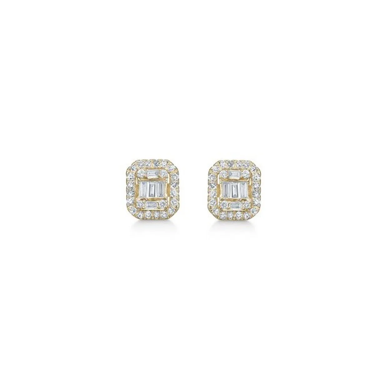 Øreringene fra serien Elizabeth i 14 kt guld med diamanter på 0,36 carat i kvaliteten wesselton/si. De er så smukke i et atypisk firkantet look, de måler 8 mm i bredden og der findes også ring og vedhæng i serien.