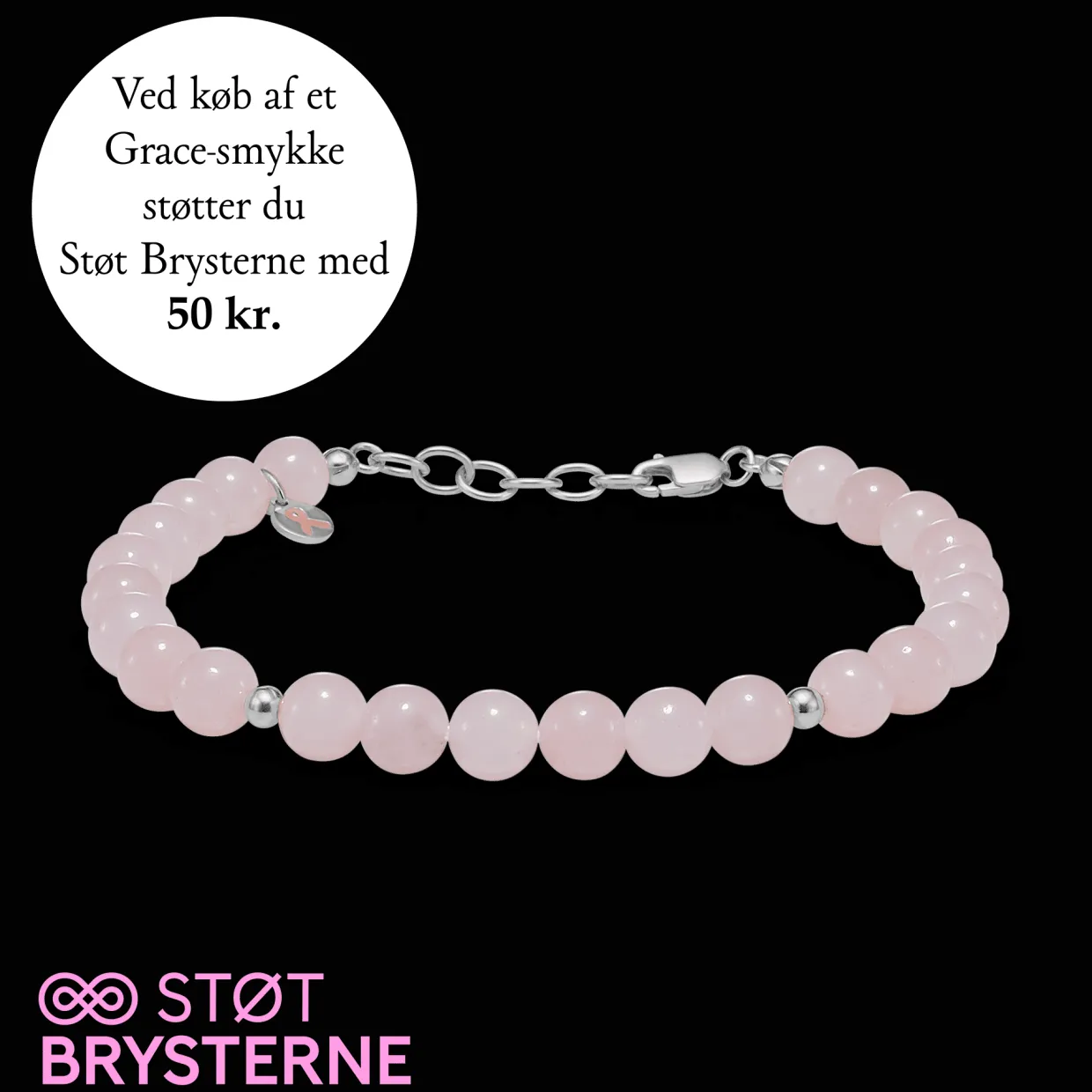 Ved køb af GRACE armbåndet støttet du med 50 kr. til Støt Brysterne og støtter dermed en vigtig sag i kampen mod brystkræft.