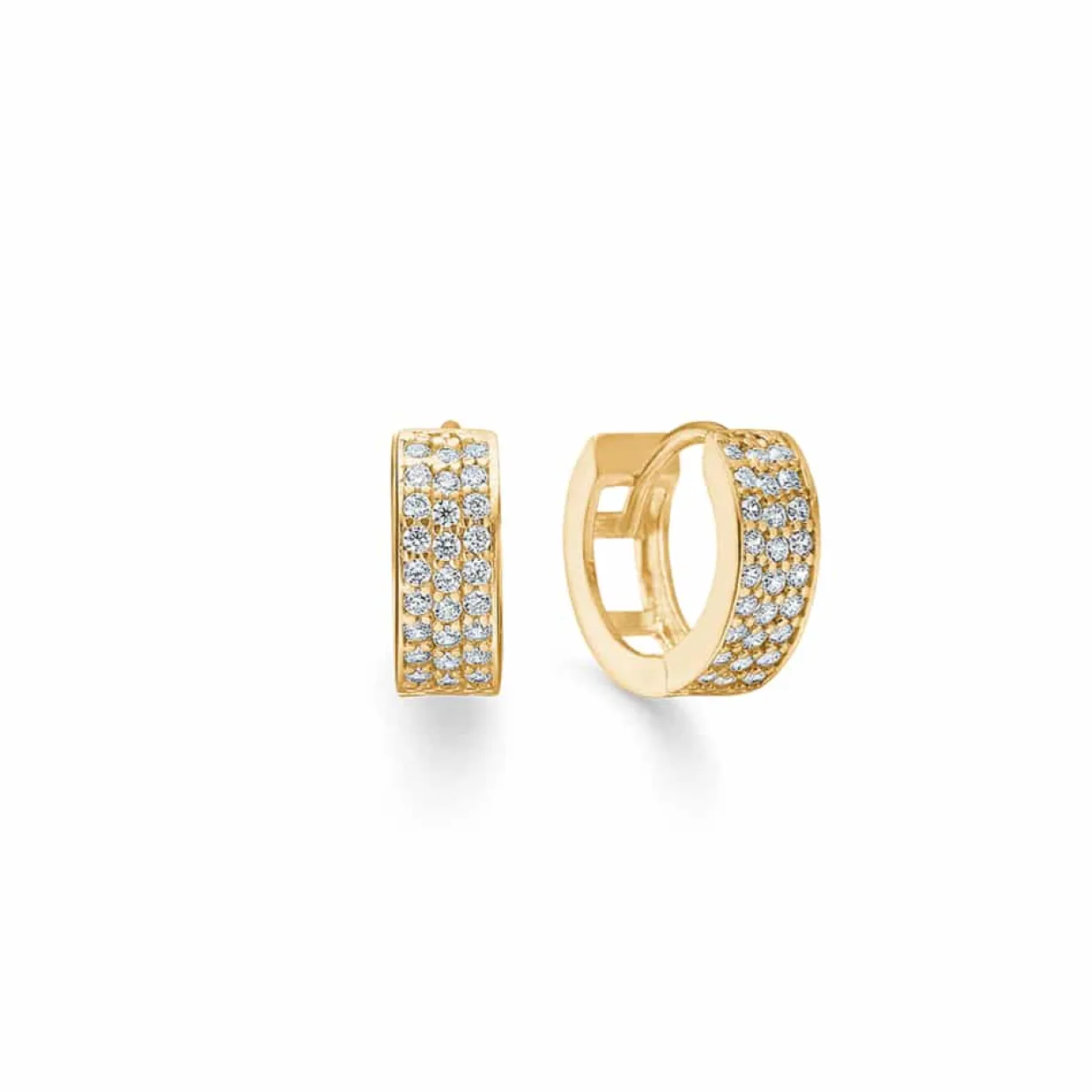 8 karat guld øreringe som creol med syntetiske zirkonia. Creolerne er med knæk funktion, så de er lette at sætte i øret. På forsiden er der fyldt med de syntetiske zirkonia.