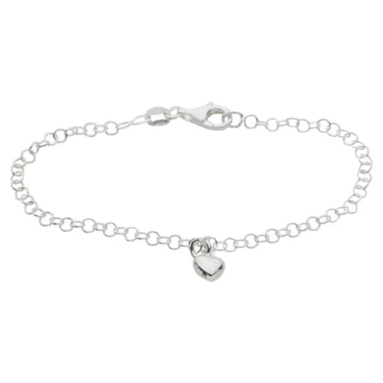 Dette søde armbånd er fremstillet i sterling sølv og rhodineret i overfladen så det er blankt og fint. I vedhænget hænger en sølv charm som er formet som et lille hjerte.