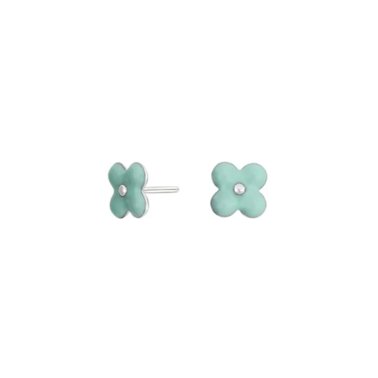 Designet som en blomst lavet af grøn emalje og ørestikkerne måler 8x8mm.