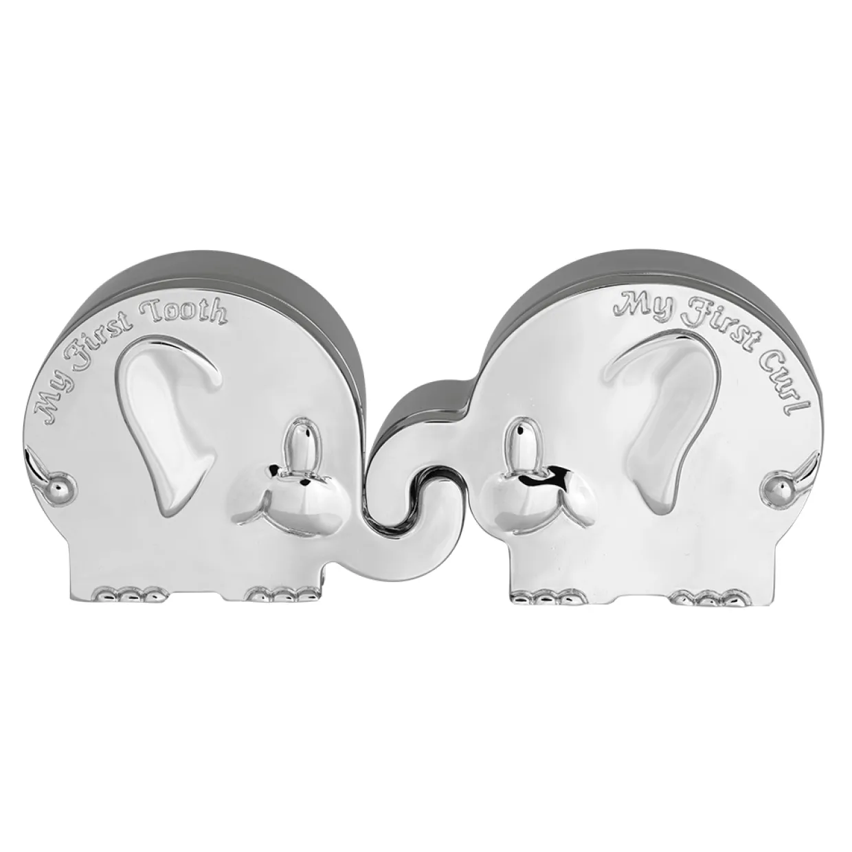 Noa kids med første tand og hårlok i forkromet med de sødeste elefanter 154-83138. Når man er blevet forældre og barnet bliver klippet første gang og er ens første hårlok. Vil det være en god ide at gemme det i sådan en æske.