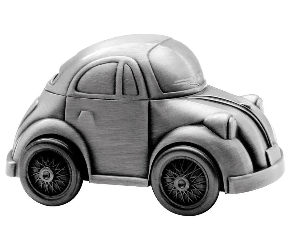 Nordahl Andersen fortinnet sparebøsse formet som en folkevogn er en charmerende og nostalgisk gaveidé. Den smukke blanke overflade og de fine detaljer gør den til et dekorativt og mindeværdigt element på ethvert børneværelse.