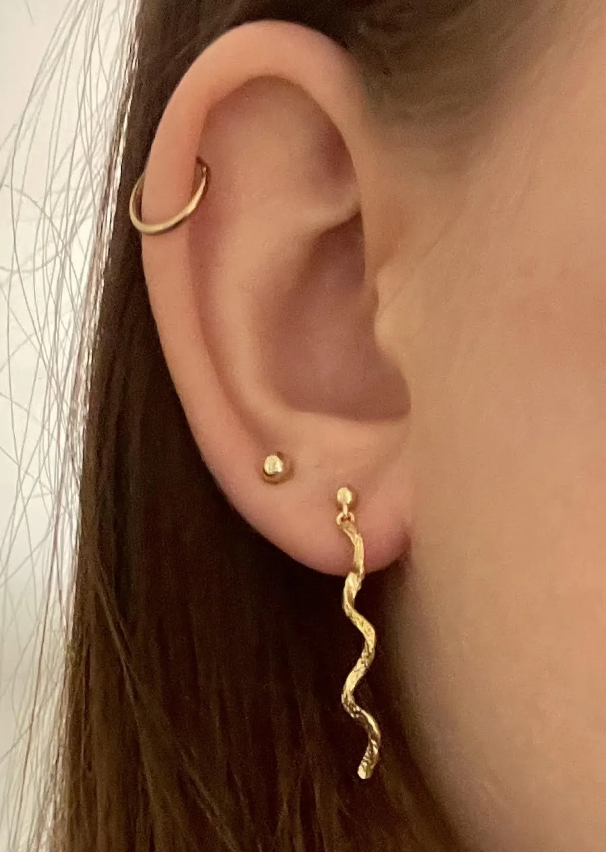 Øreringe i 925 sterling sølv forgyldt, ørestikkerne er designet med et smukt snoet udseende.
