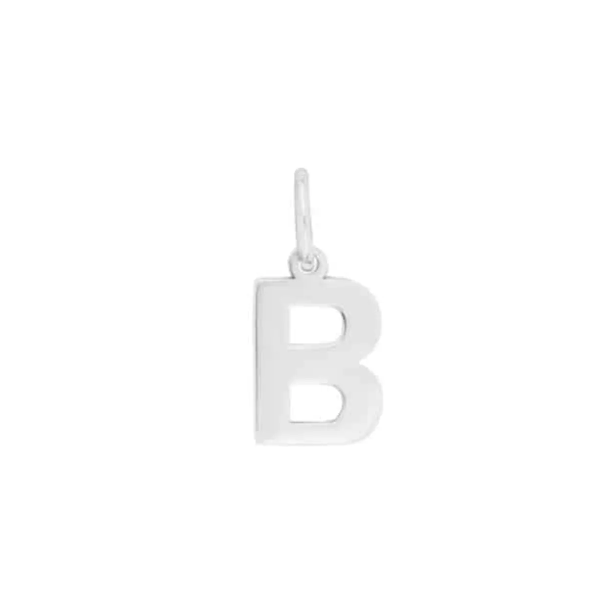 Enkelt og tydeligt bogstavs vedhæng, med bogstavet B. Vedhænget måler 9 mm i højden og 6 mm i breden. Vedhænget er lavet ud af sterling sølv.
