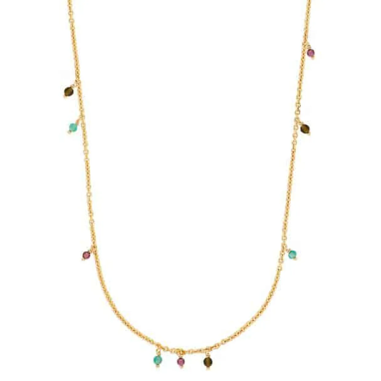 NORDAHL ENJOY52 SØLV FORGYLDT HALSKÆDE MED MIX AF STEN – 80290185950