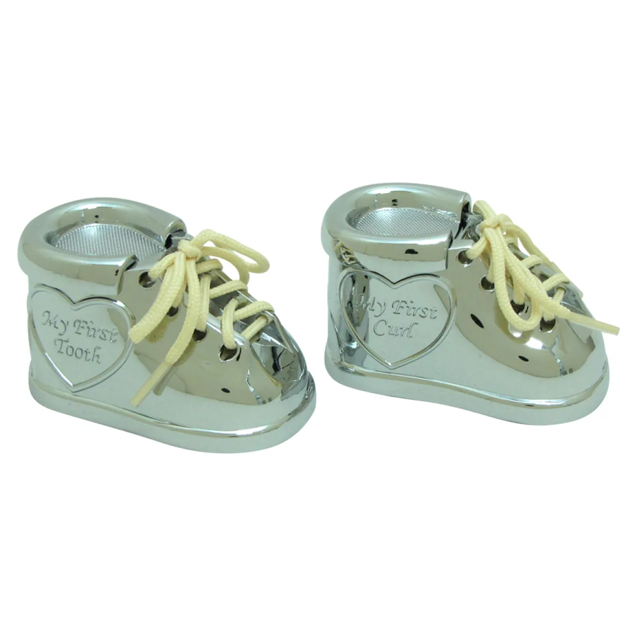 Min første tand og hårlok sæt består en to sko der er fremstillet i krom med to farver snørebånd til lyseblå i cremefarvet.