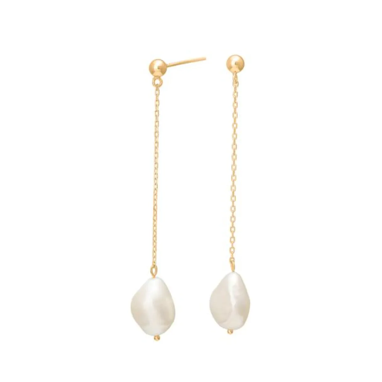NORDAHL JEWELLERY FORGYLDT ØREHÆNGER KÆDE MED PERLE – 30490035900
