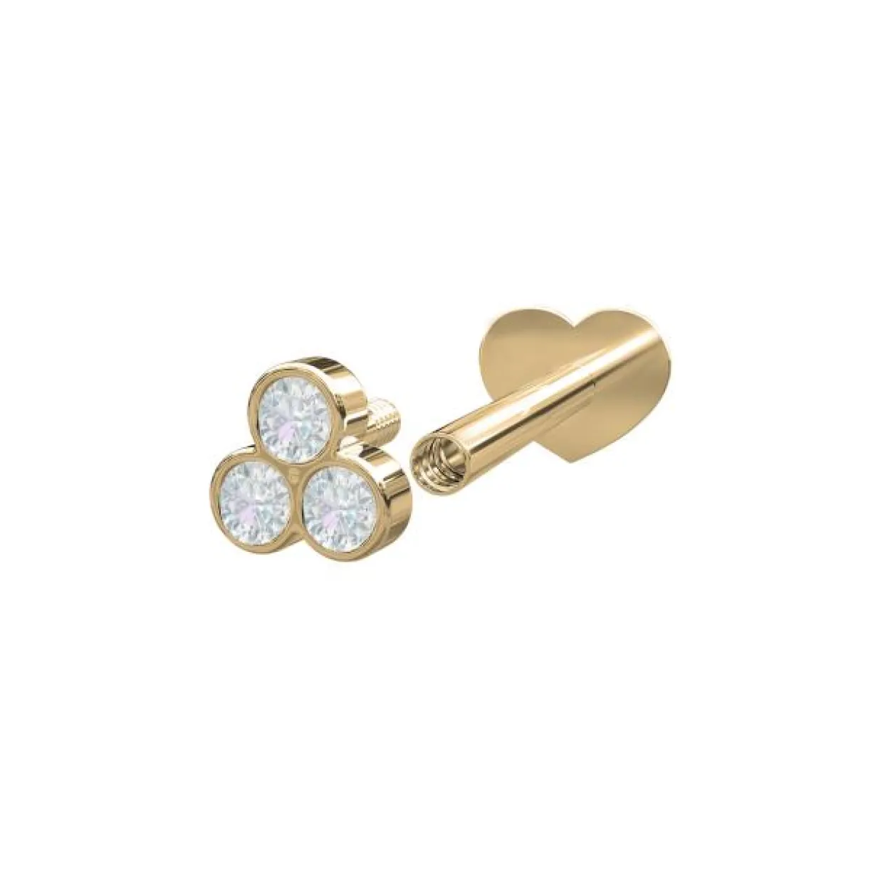 1 stk. 14 karat piercing med 3 små 0,04 ct. diamanter. Piercingen er med skruegevind, så man slipper for en stor lås på bagsiden. Kan også vendes med hjertet fremad.