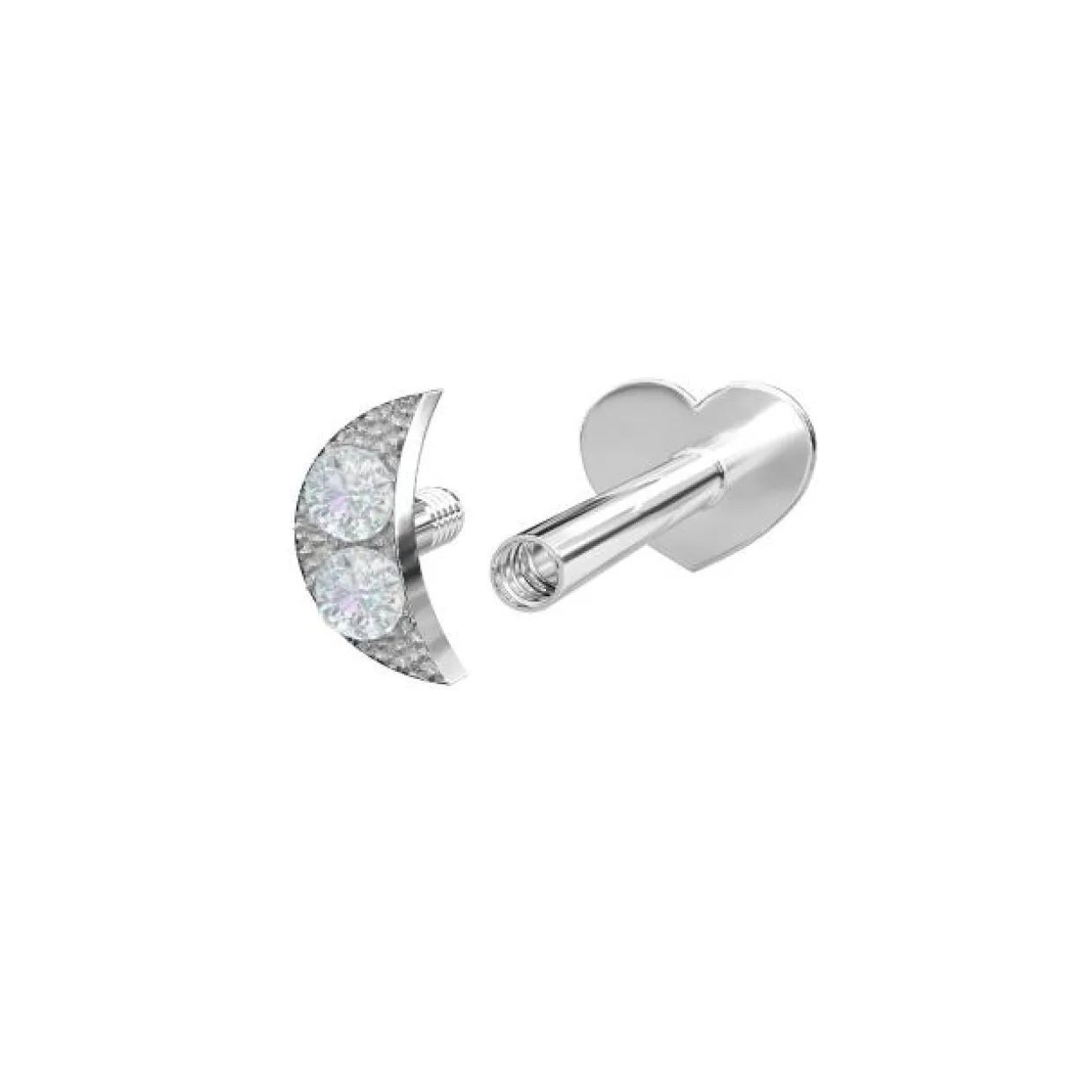 Månen måler 3,5 mm i højden og 2,25 mm i bredden. Diameter på røret er 1 mm og 6 mm langt. Labretten er lavet i sterling sølv, som har fået en rhodium behandling.