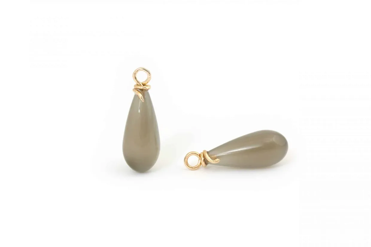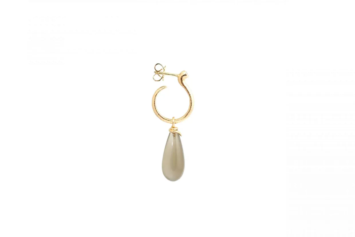 14 karat guld vedhæng med grå månesten. Vedhængene kan sættes i øreringre som et vedhæng, så de kan give et ekstra pift.