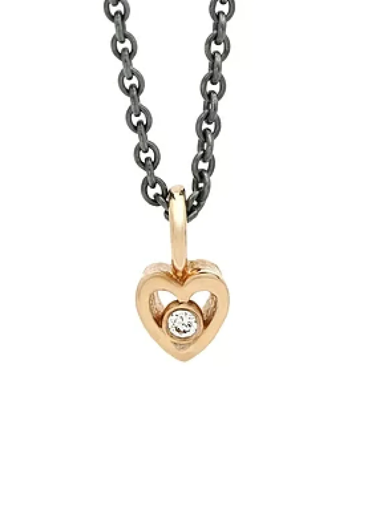 Det smukkeste lille hjerte vedhæng med en diamant i midten. Kæden medfølger som er en sølv forgyldt rund anker kæde i 45 cm. Kæden kan om byttes efterfølgende.