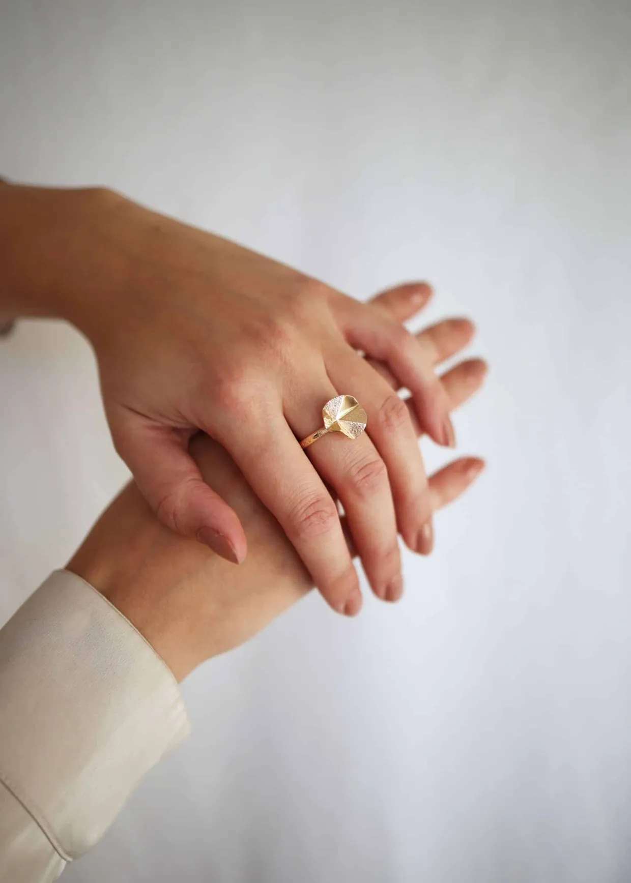 14 karat guld ring uden sten. Ringen er fra serien LILY LUMINA hvor der også findes vedhæng og øreringe til. Ringen er håndlavet i massiv 14 karat guld med materet overflade.