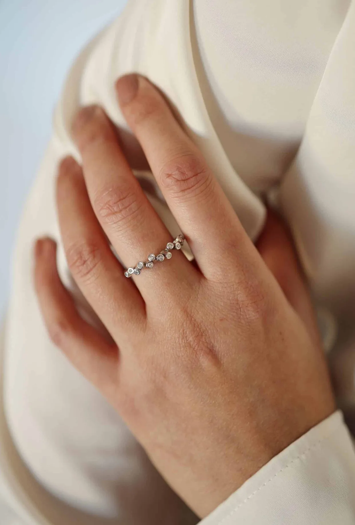 14 karat guld ring med brillanter. Brillanterne er på i alt 0,13 carat i kvaliteten top wesselton/vs. Ringen kan sættes sammen med andre ringe.