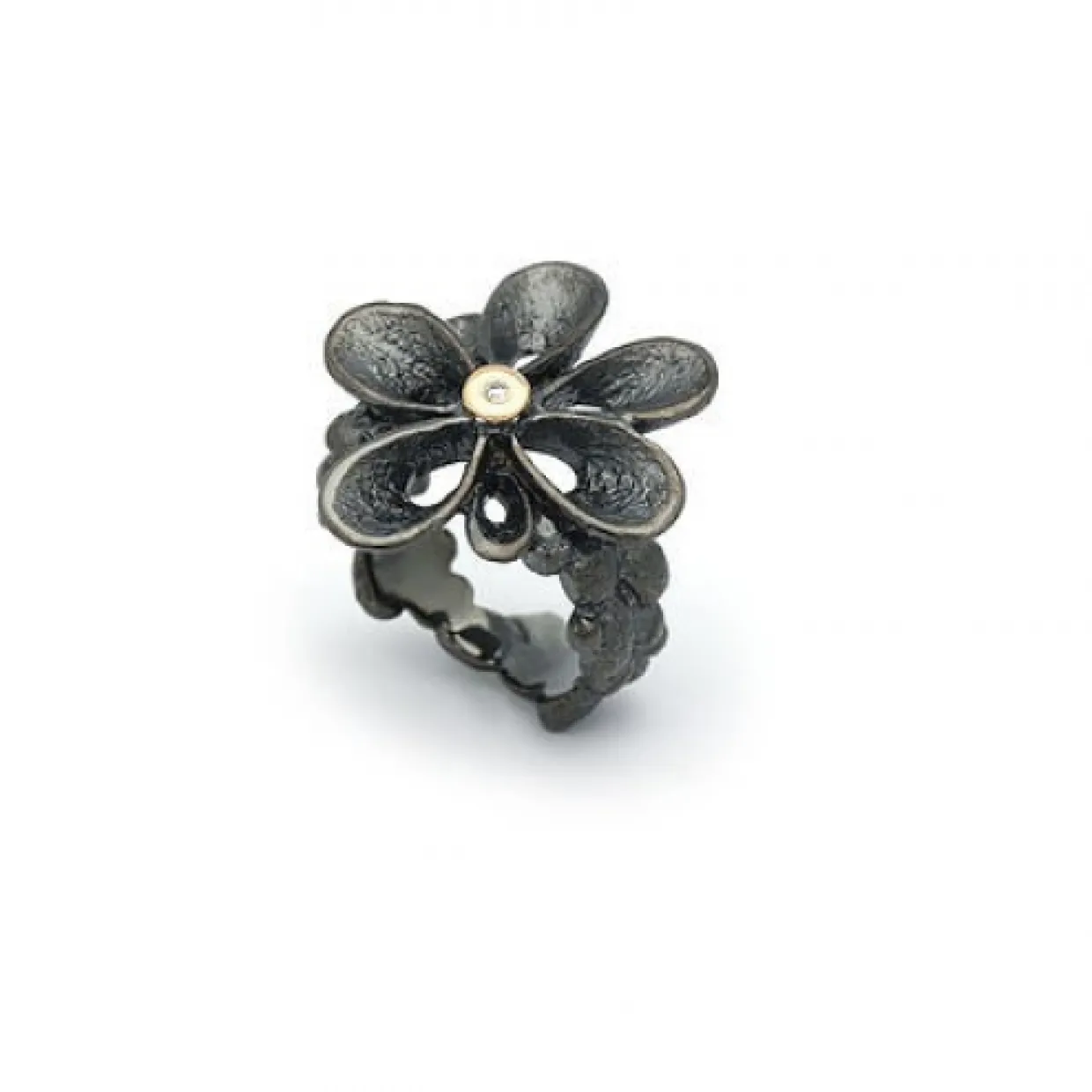 Sølv oxyderet ring med brillant. Brillanten er på 0,02 carat i kvaliteten top wesselton/vs. Super flot ring som får sit eget udseende med tiden.