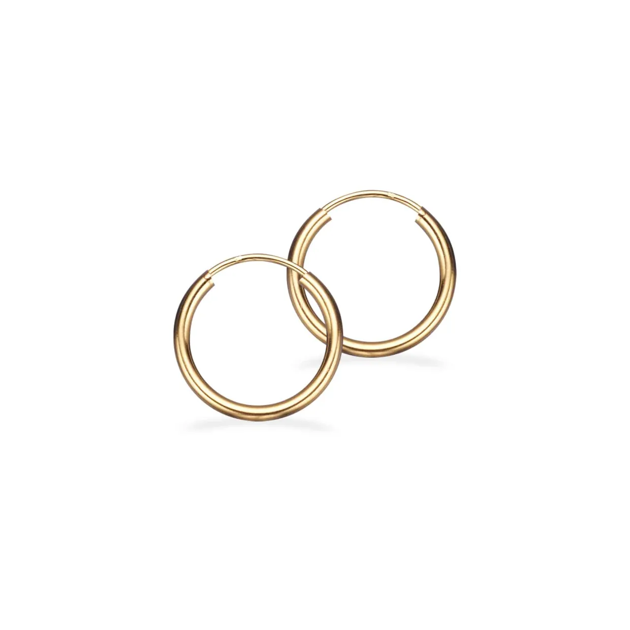 14 karat guld øreringe som creol. Creolerne er hule og er med vrid funktion. Creolerne måler 2 mm i bredden og har en diameter på 15 mm.