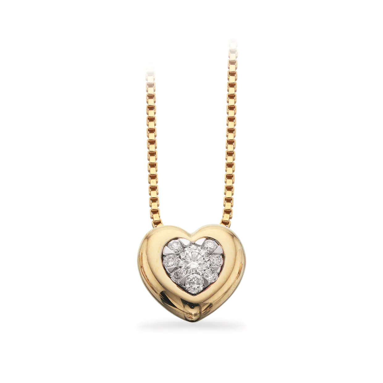 Eksklusivt, lille 2-farvet hjertevedhæng med 0,11 ct W/si brillanter.