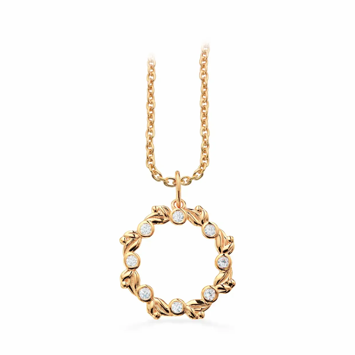 SCROUPLES 8 KARATS GULD HALSKÆDE CIRKEL MED ZIRKON OG BLADE – 213503