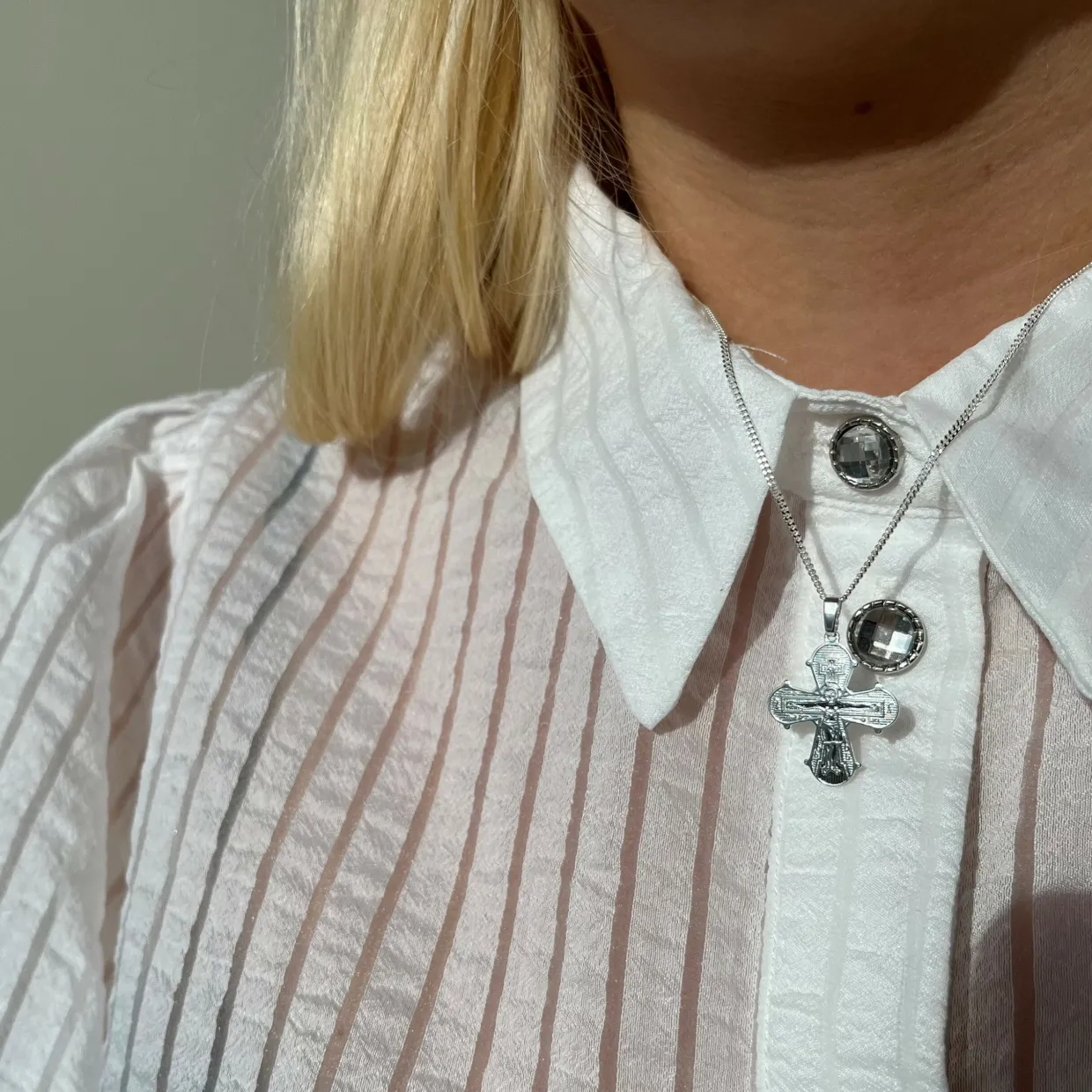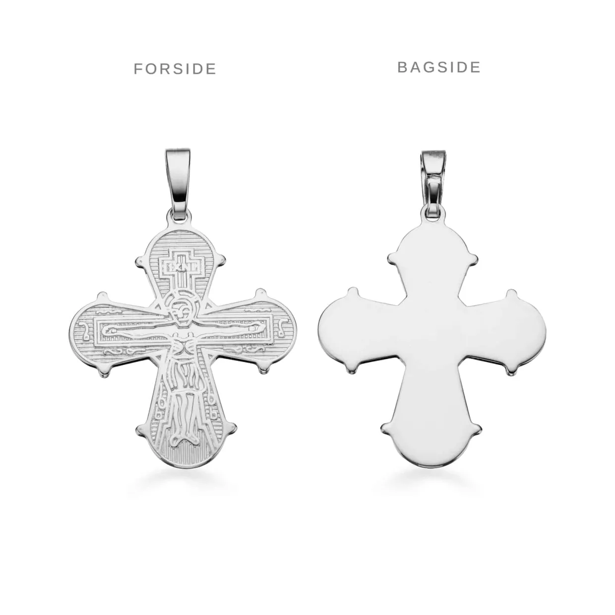 Sølv vedhæng med dagmarkors. Dagmarkorset er blank på bagsiden og måler 21 mm i højden og 19 mm i bredden. korset er uden kæde.