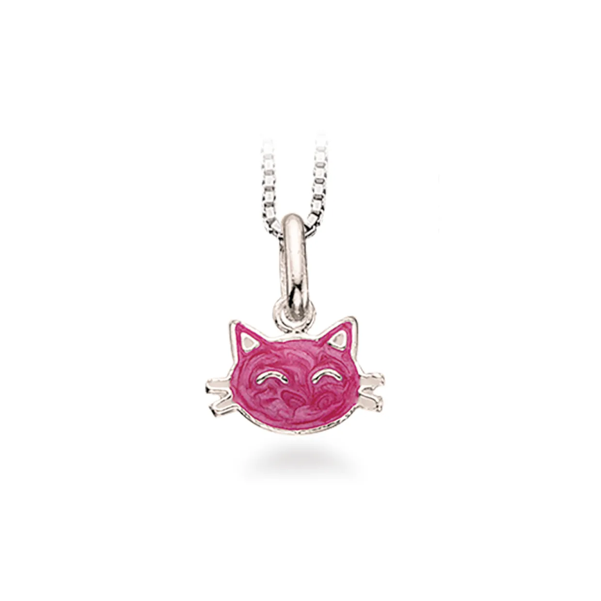 Sød børne halskæde med pink kat fra Girls serien fra Scrouples, som er en smykke serie med alverdens søde børnemotiver
