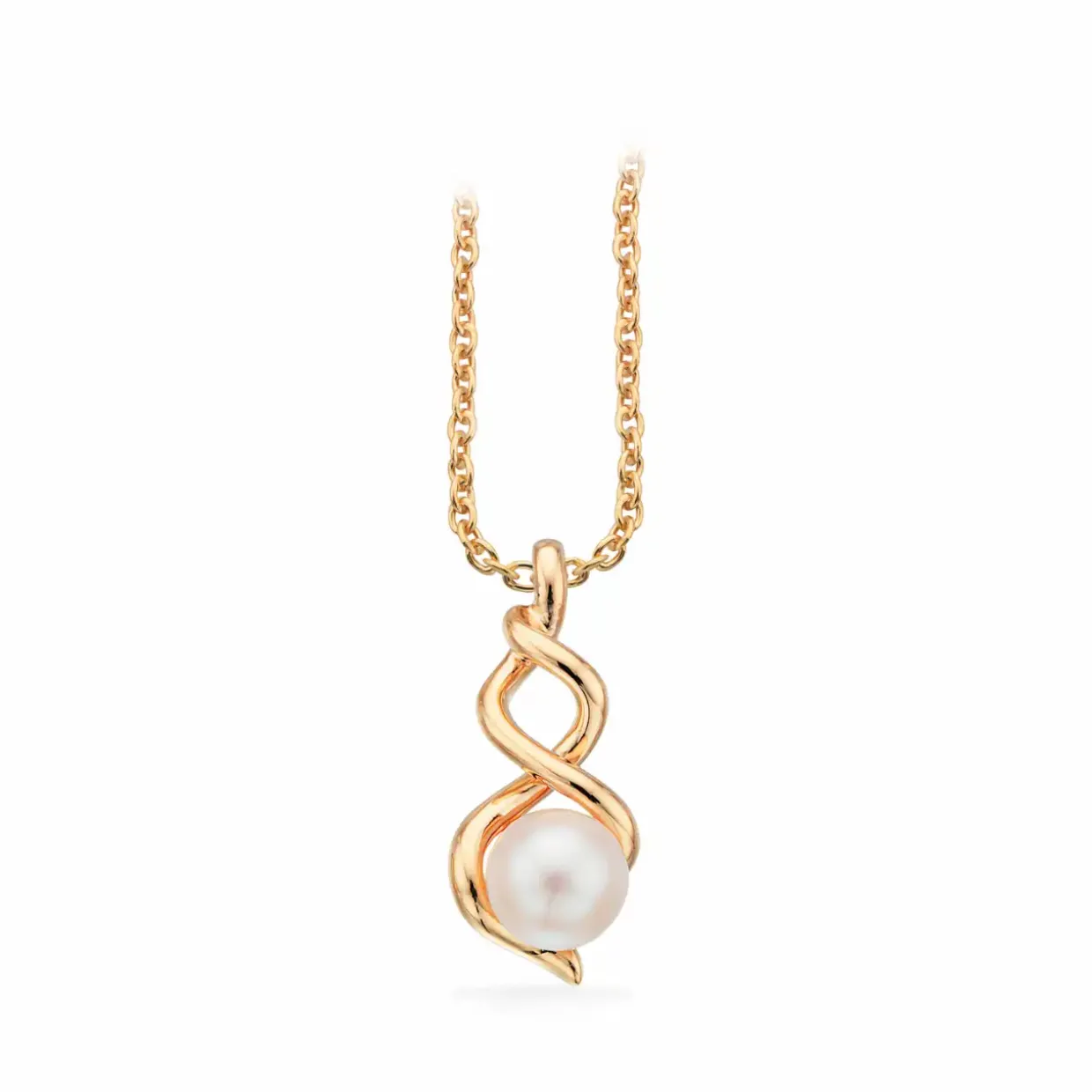 8 karats guld snoet design vedhæng med flot hvid ferskvandsperle, medfølgende sølv forgyldt halskæde i 45 cm.