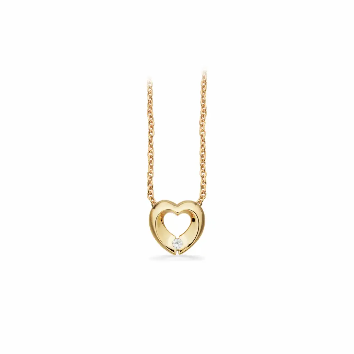 Sød enkelt halksæde lavet i 8 karats guld, vedhænget er designet som et hjerte en en flot hvid zirkonia isat.