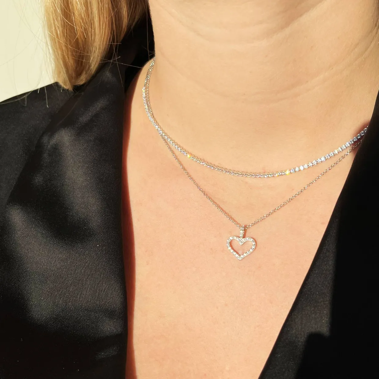 Flot sølv halskæde med zirkoner som giver et flot og elegant look på halsen.