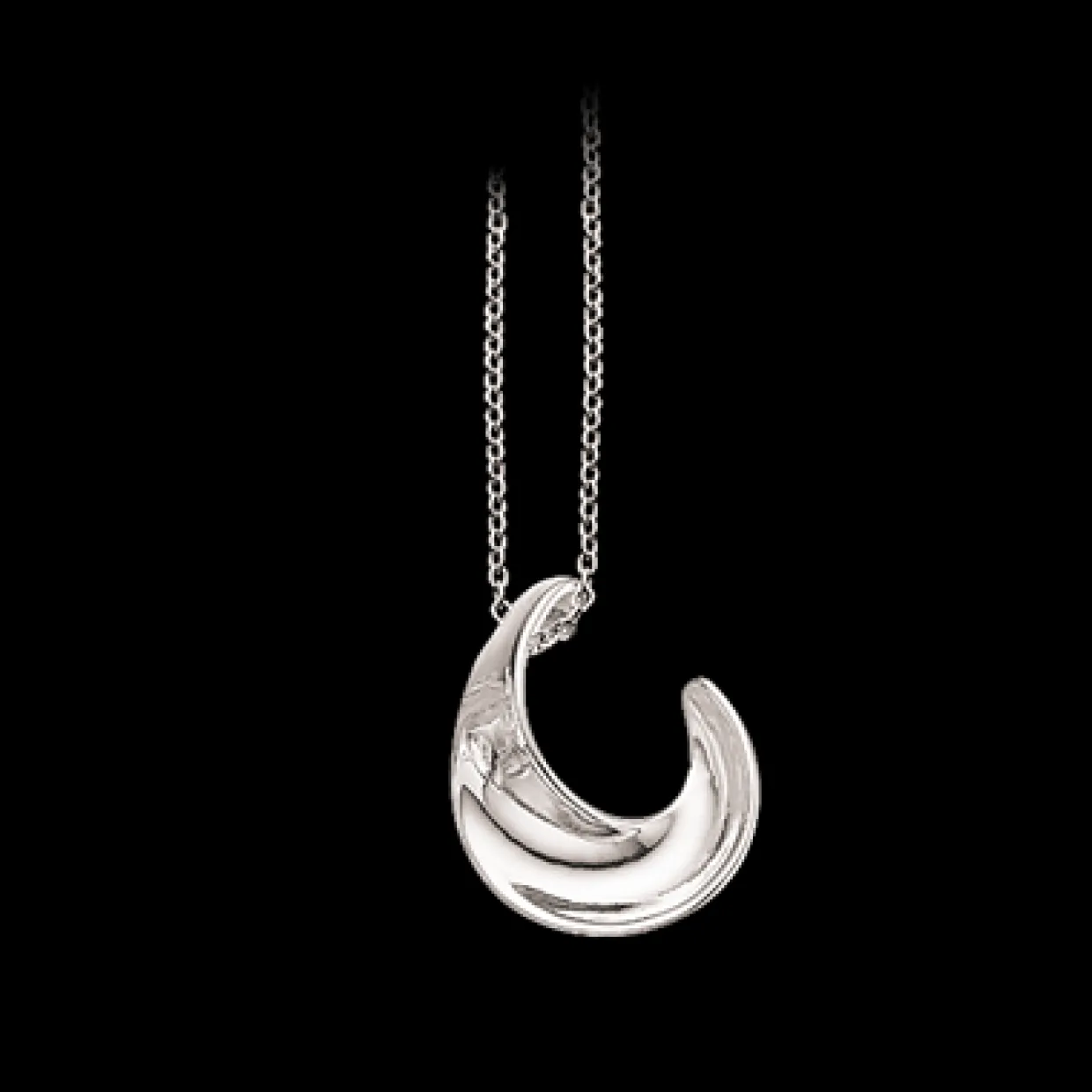 Scrouples sølv halskæde med buet vedhæng. Kæden er i materialet sterling sølv oh med mønsteret rund anker i en længde på 45 cm. Vedhænget er et buet flot vedhæng, som er utrolig elegant.