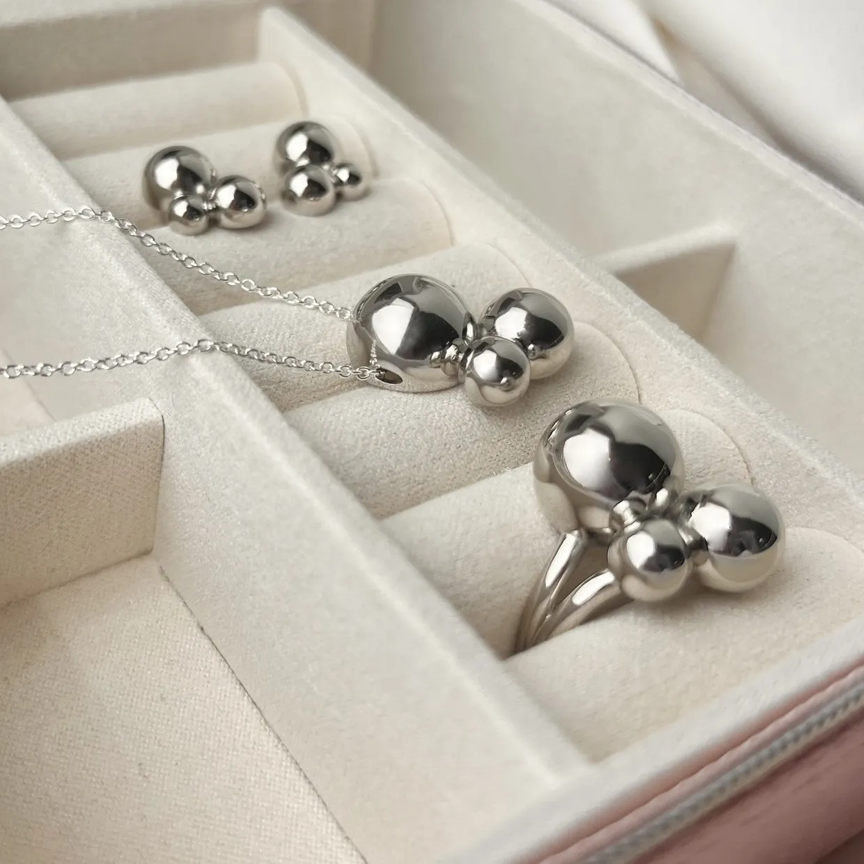 Halskæden er en elegant og moderne smykke, der kombinerer stilfuld minimalisme med sofistikeret design. Halskæden er fremstillet af højkvalitets sterlingsølv og prydes af små, glatte kugler, der giver et subtilt men luksuriøst udtryk. Den enkle og tidløse design gør den ideel til både hverdag og fest, og den kan nemt kombineres med andre smykker for at skabe et personligt look.