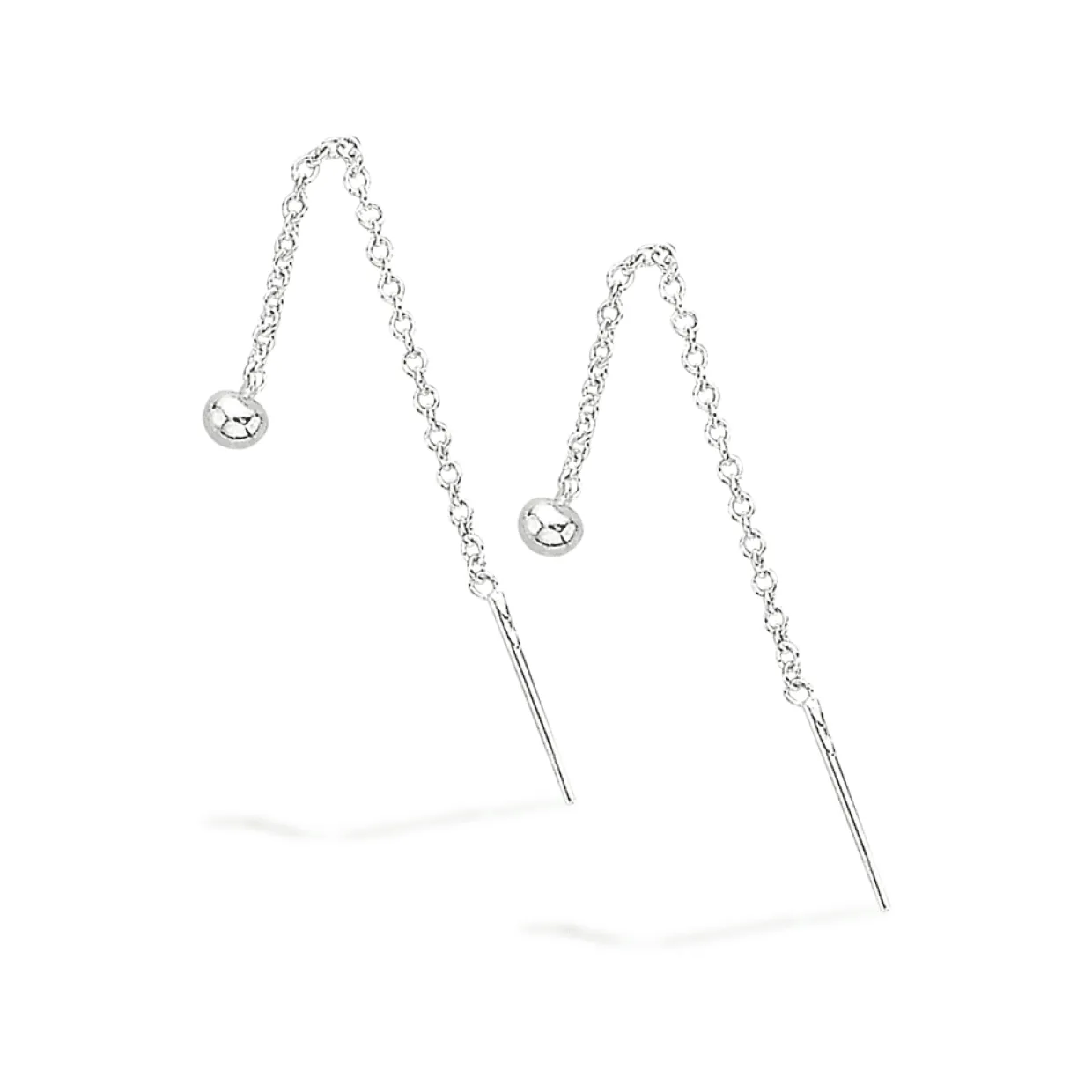 Sølv øreringe som kæde med kugle i enden. Kæden trækker man igennem øret og sidder den der hvor man gerne vil have det. Ørekæden er ca. 6 cm.