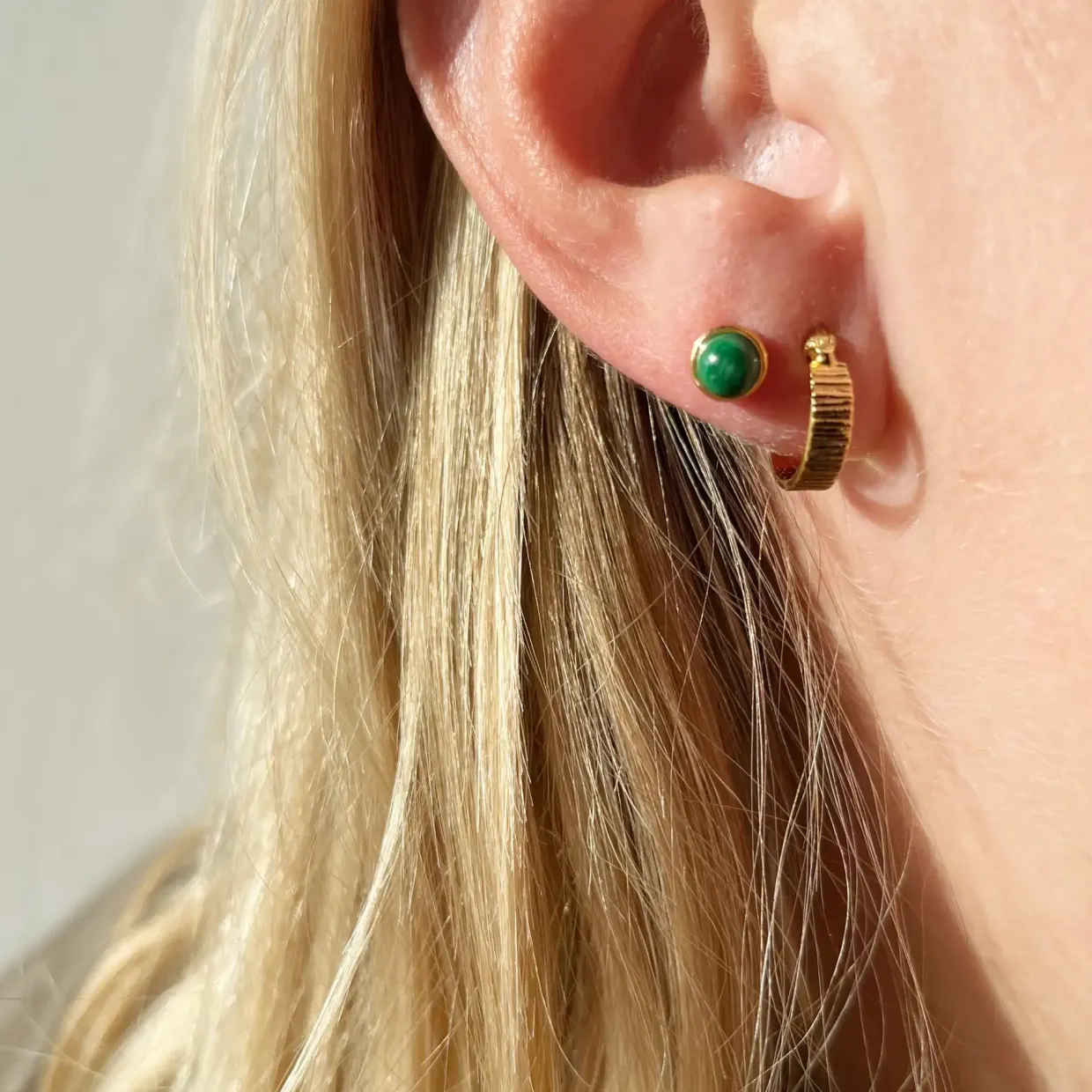 SCROUPLES ØRERING SINGLE SØLV FORGYLDT MED SYNTETISK MALAKIT – 160352-1