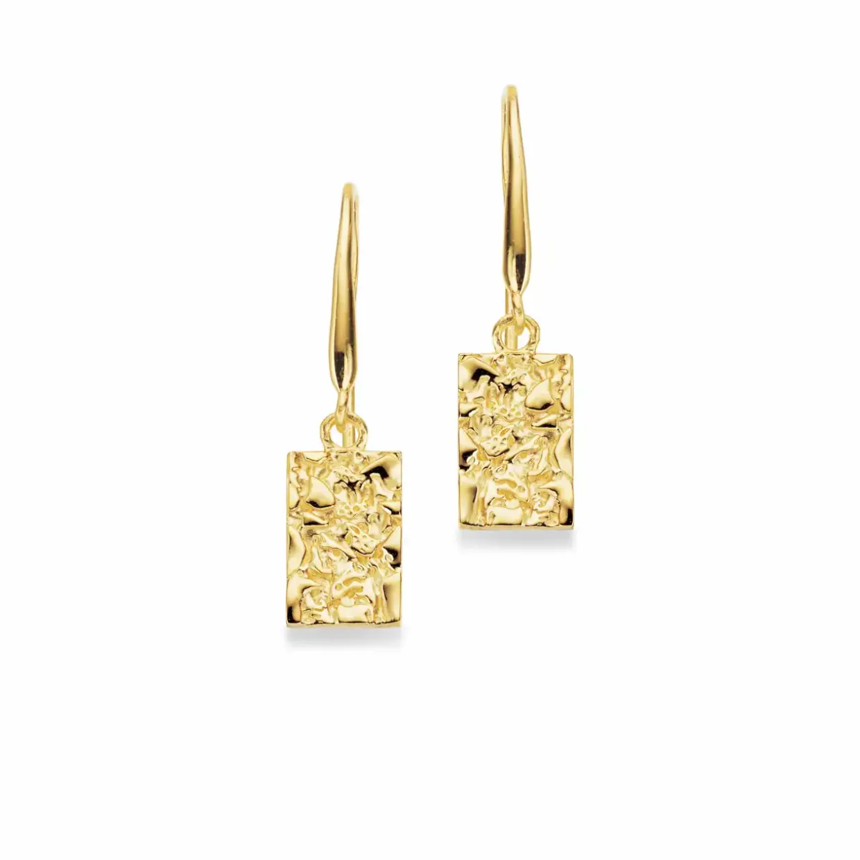 Øreringe lavet i 8 karats guld, Designet som en rustik hamret firkantet plade, moderne og trendy.