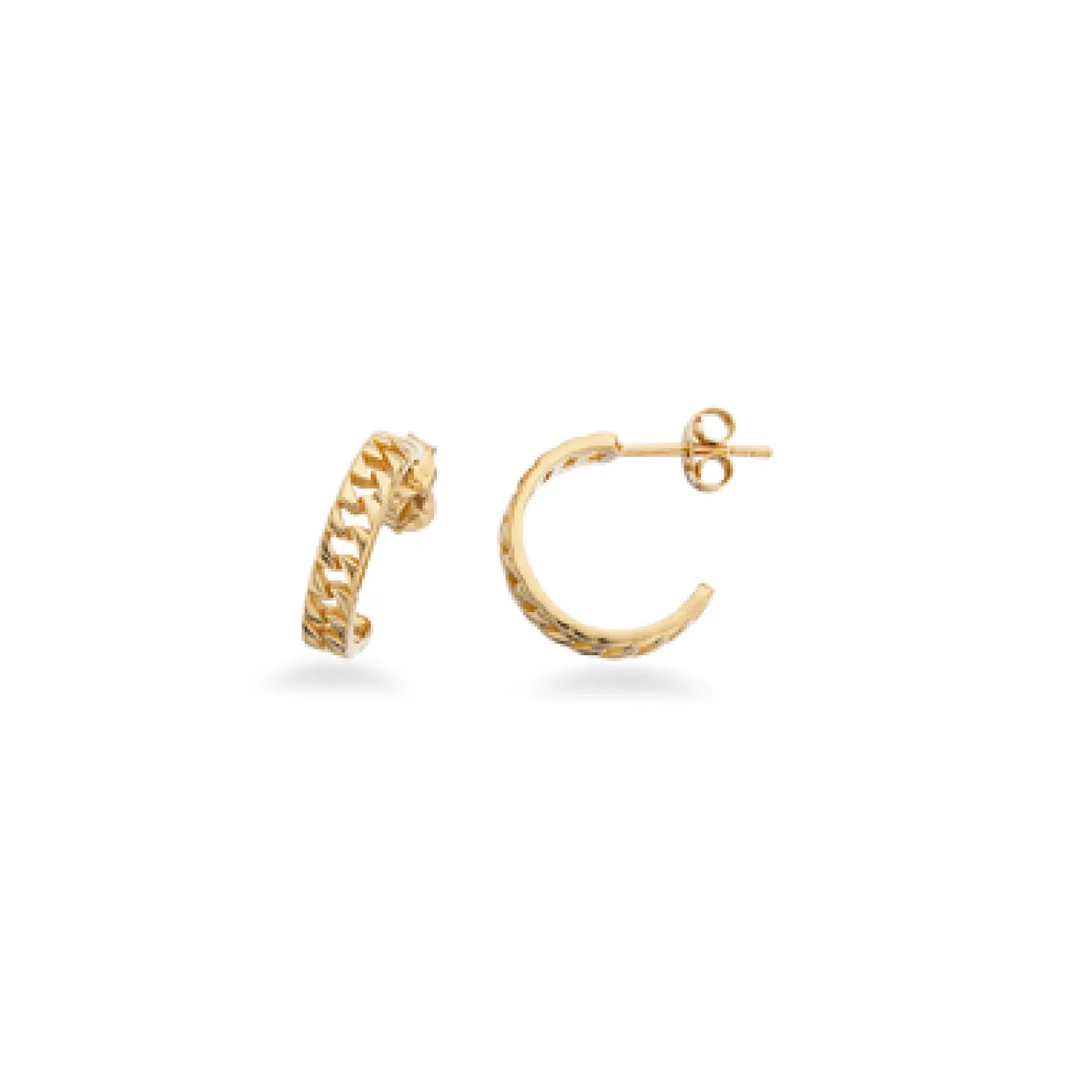 Disse moderne halv creoler er fremstillet i sterling sølv, og belagt med rød guld. Øreringene er med stik, og creolerne har et møsnter i som giver dem en råt udtryk.