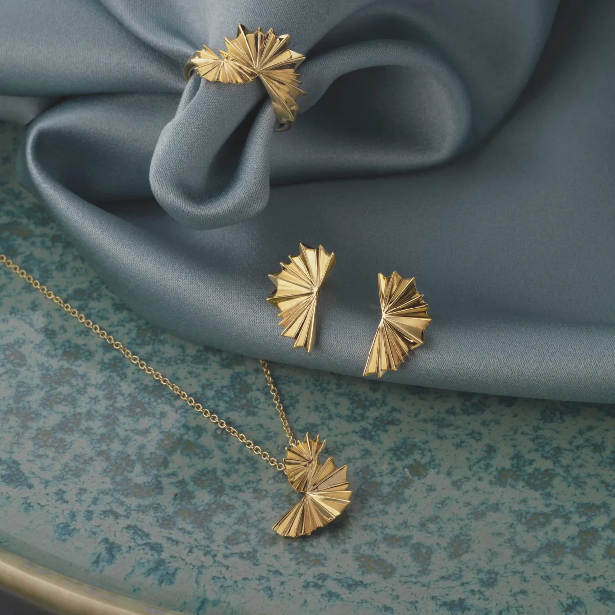 Det unikke plissé-design giver halskæden struktur og bevægelse, mens den varme forgyldning fremhæver detaljerne og skaber et luksuriøst udtryk. Halskæden kan bæres alene som et stilrent statement eller kombineres med andre smykker for et mere personligt og moderne look.