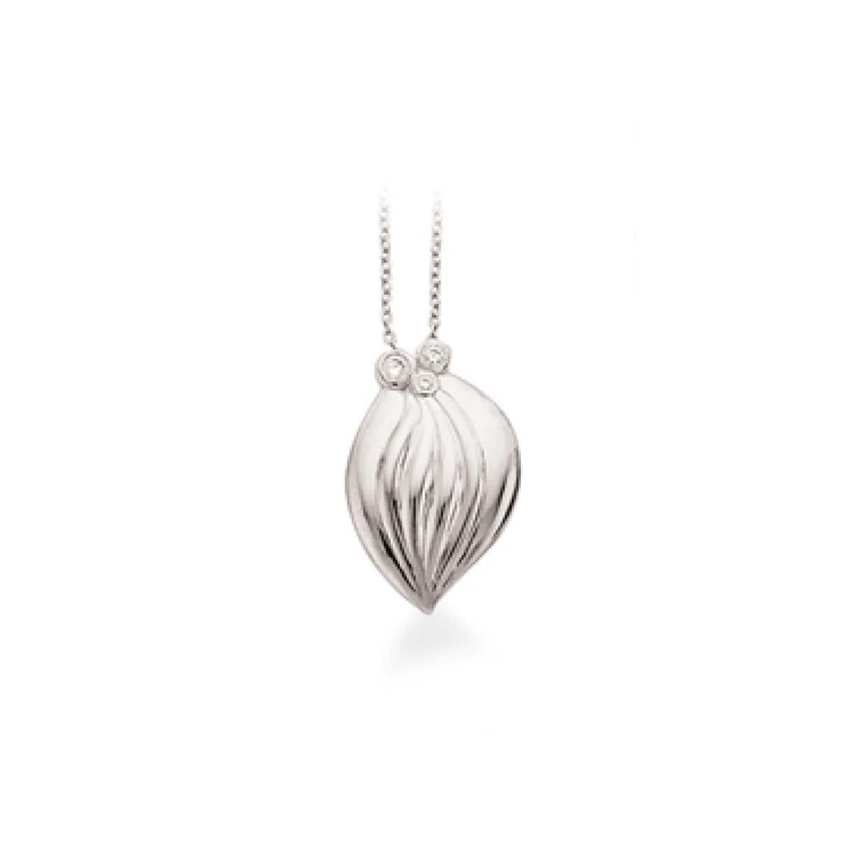 Denne elegante halskæde er fremstillet i sterling sølv og er blank og flot i overfladen. Halskæden er designet med et vedhæng som er formet som et blad som er i sat kubiske zirkoner.