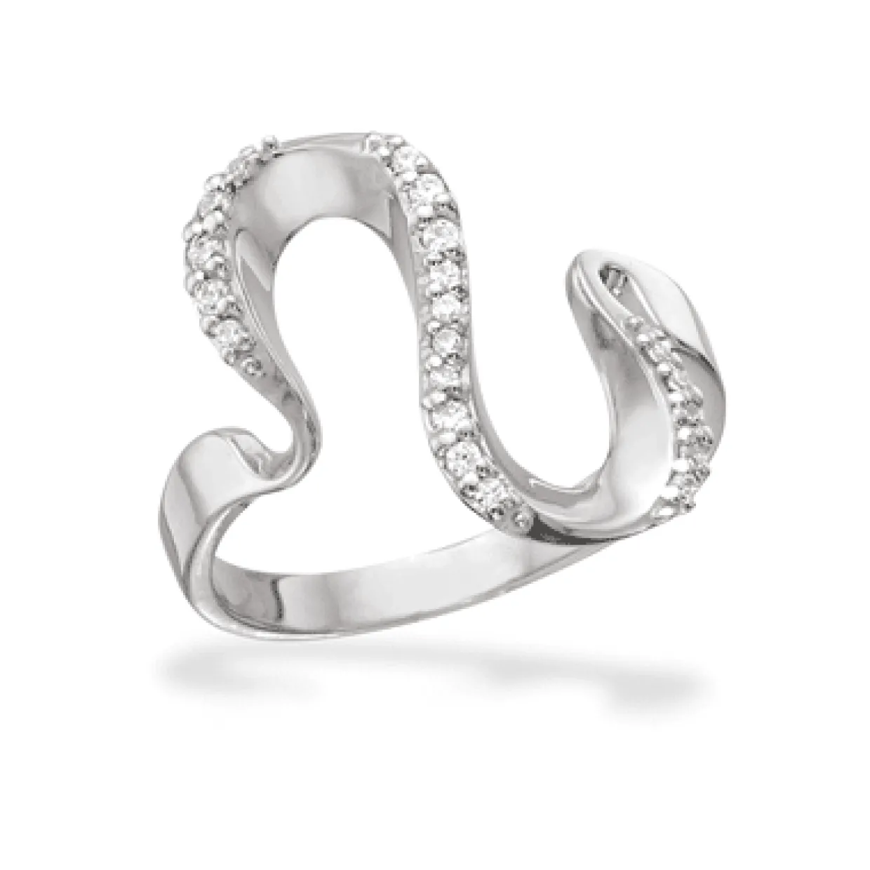 Super smuk ring i sterling sølv, og formet i et organiske bølge former og besat med klare zirkonia. Skriv hvilken størrelse du ønsker ringen i, i kommentarfeltet når du bestiller den her.