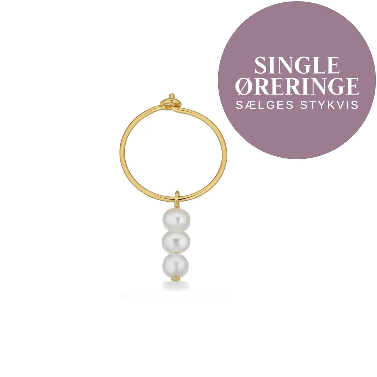 Denne feminine creol er lavet af forgyldt sterling sølv og har 3 ferskvandskulturperler hængende i creolen. Flot at bruge asymmetrisk og med flere små ørestikker ved siden af.