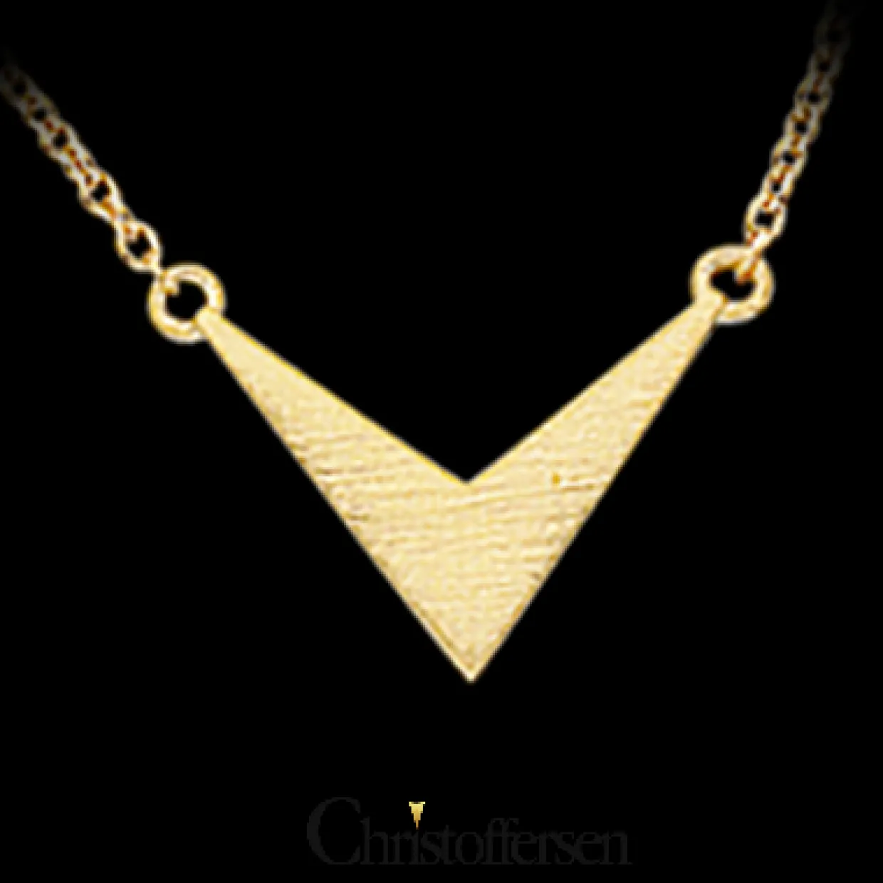 Sølv forgyldt halskæde hvor vedhænget sidder i selve kæden. Kæden er en rund anker kæde og i længden 42 cm. Vedhænget er et spids vedhæng som passer godt til kæden.