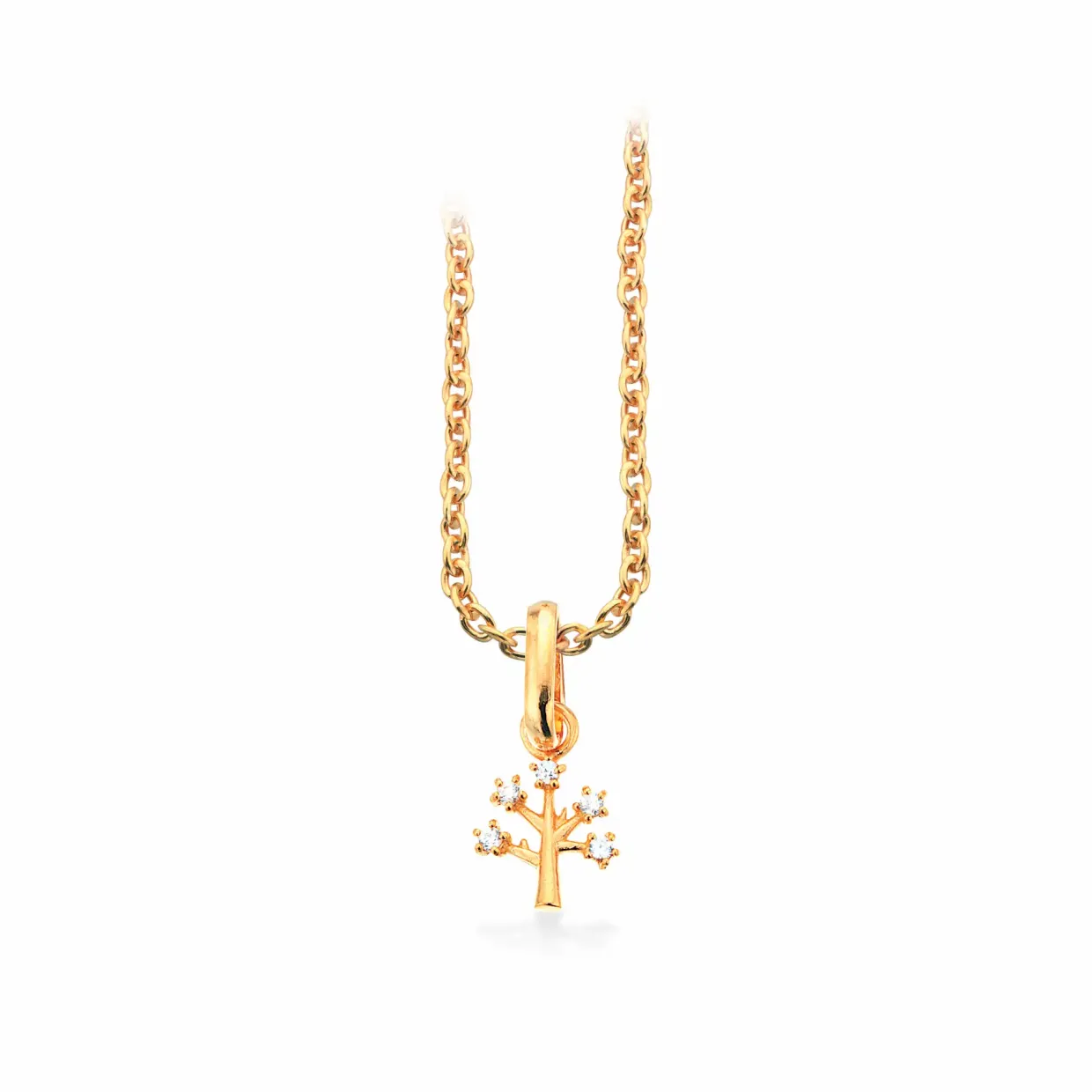 Flot sølv forgyldt halskæde med livets træ samt zirkoner i kronerne.