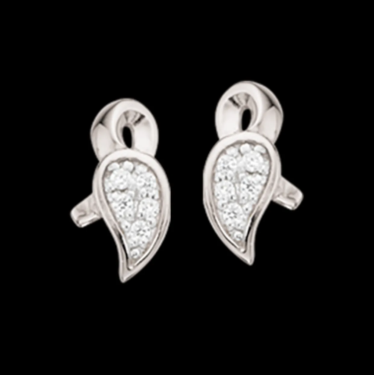 Flotte sølv øreringe med zirkoner isat , øreringene har form som et blad