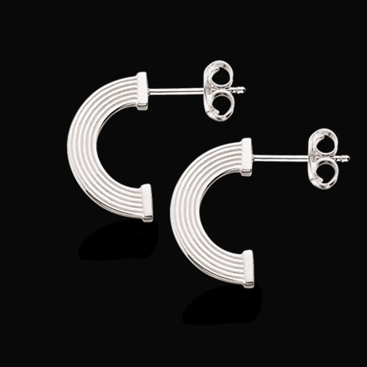 Sølv øreringe som creol med riller. Creolerne er på stik da creolen ikke går hele vejen rundt. Creolen har en bredde på 1 mm og måler 12 mm i højden.