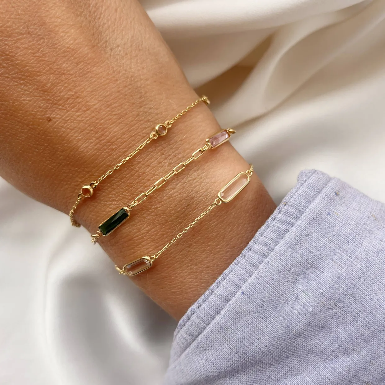 Det elegante Soho-armbånd fra Scrouples er et smykke, der forener klassisk elegance med et legende og farverigt twist. Udført i sterlingsølv og belagt med 18 kt. forgyldning får armbåndet en varm gylden glød.