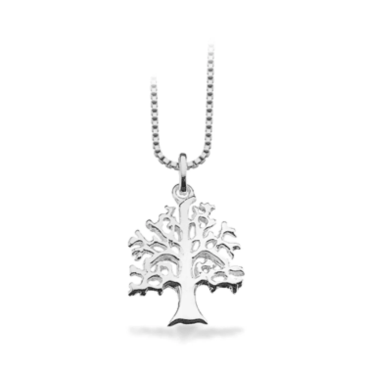 Sølv halskæde med vedhæng som livets træ. Vedhænget livets træ er uden sten med blank oveflade. Kæden er en venezia på 45 cm, som kan ombyttes efterfølgende.