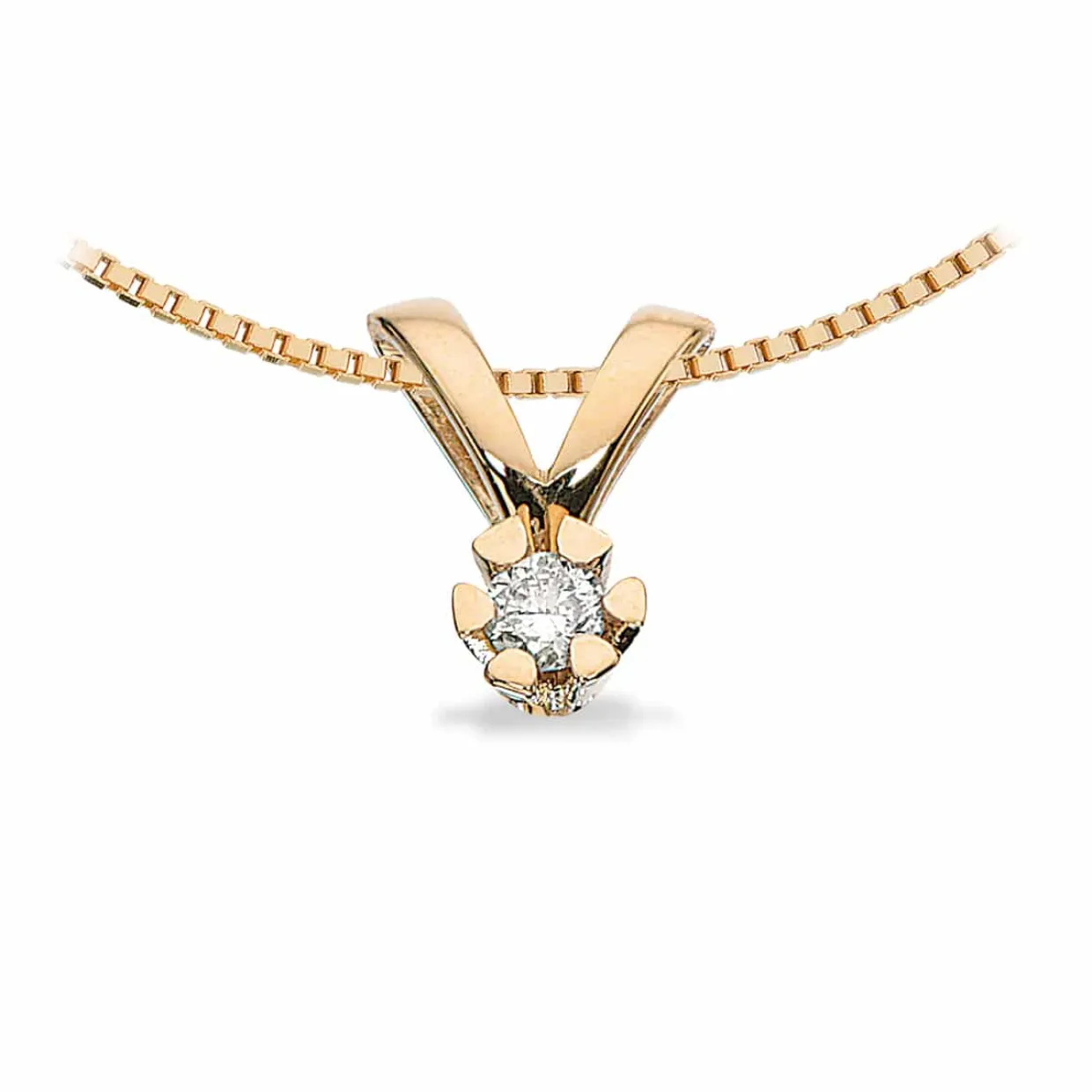 Vida vedhæng fremstillet i 8 karat rødguld. I vedhænget er fattet en ægte diamant, som har følgende egenskaber: