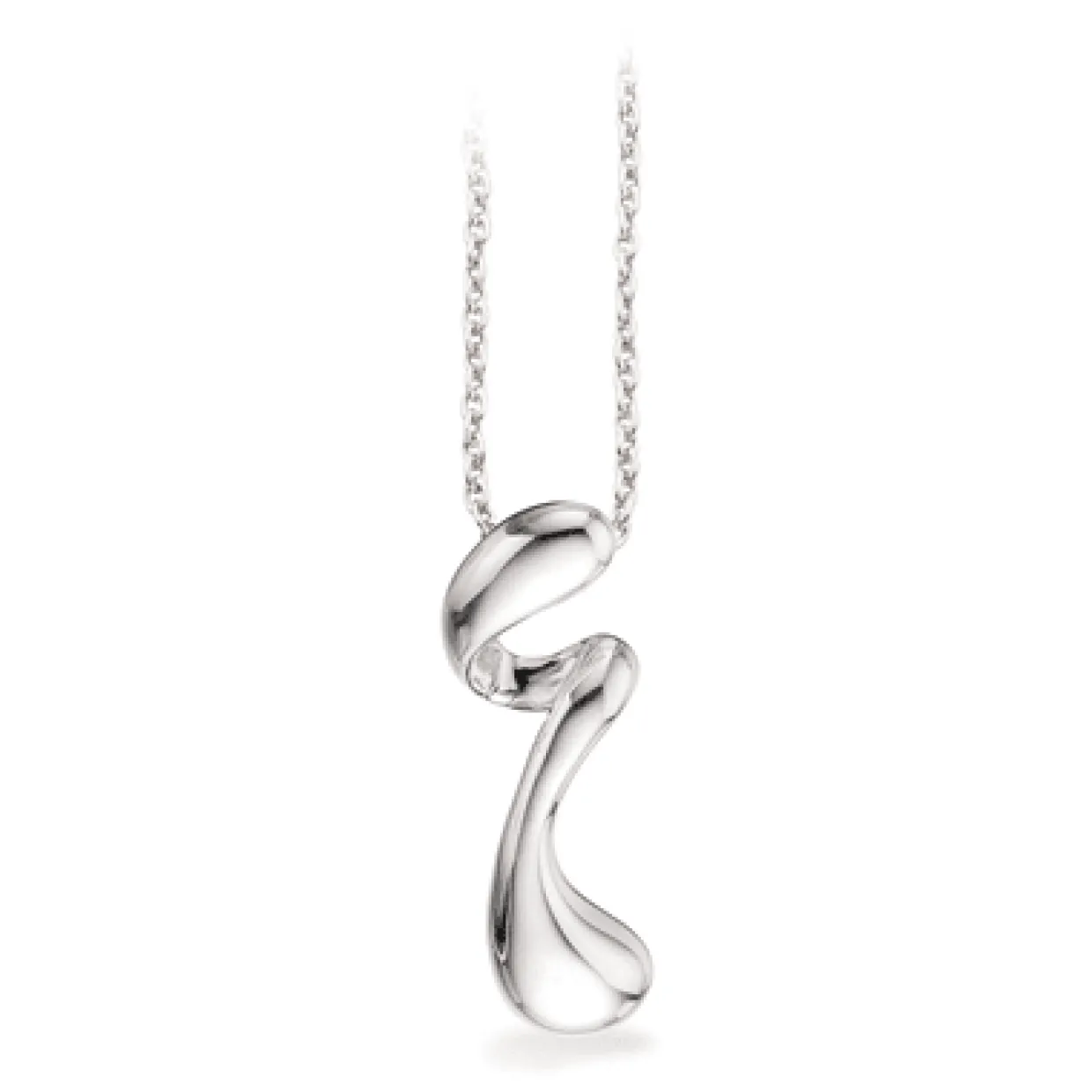 Flot vedhæng i sterling sølv, på en sølv kæde som måler 45 cm. Vedhænget er designet som en dråbe i spiral for og kan købes som et sæt med øreringe i samme design.