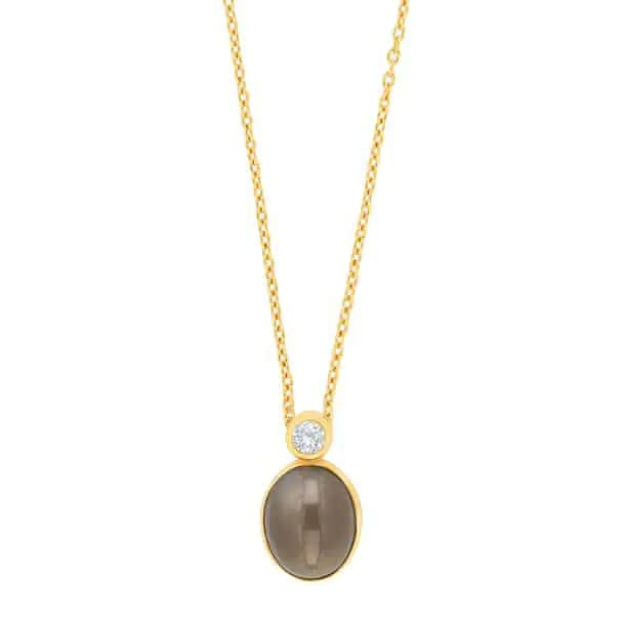 SIERSBØL HALSKÆDE 8 KARAT GULD MED GRÅ MÅNESTEN OG ZIRKONIA – 20550270300