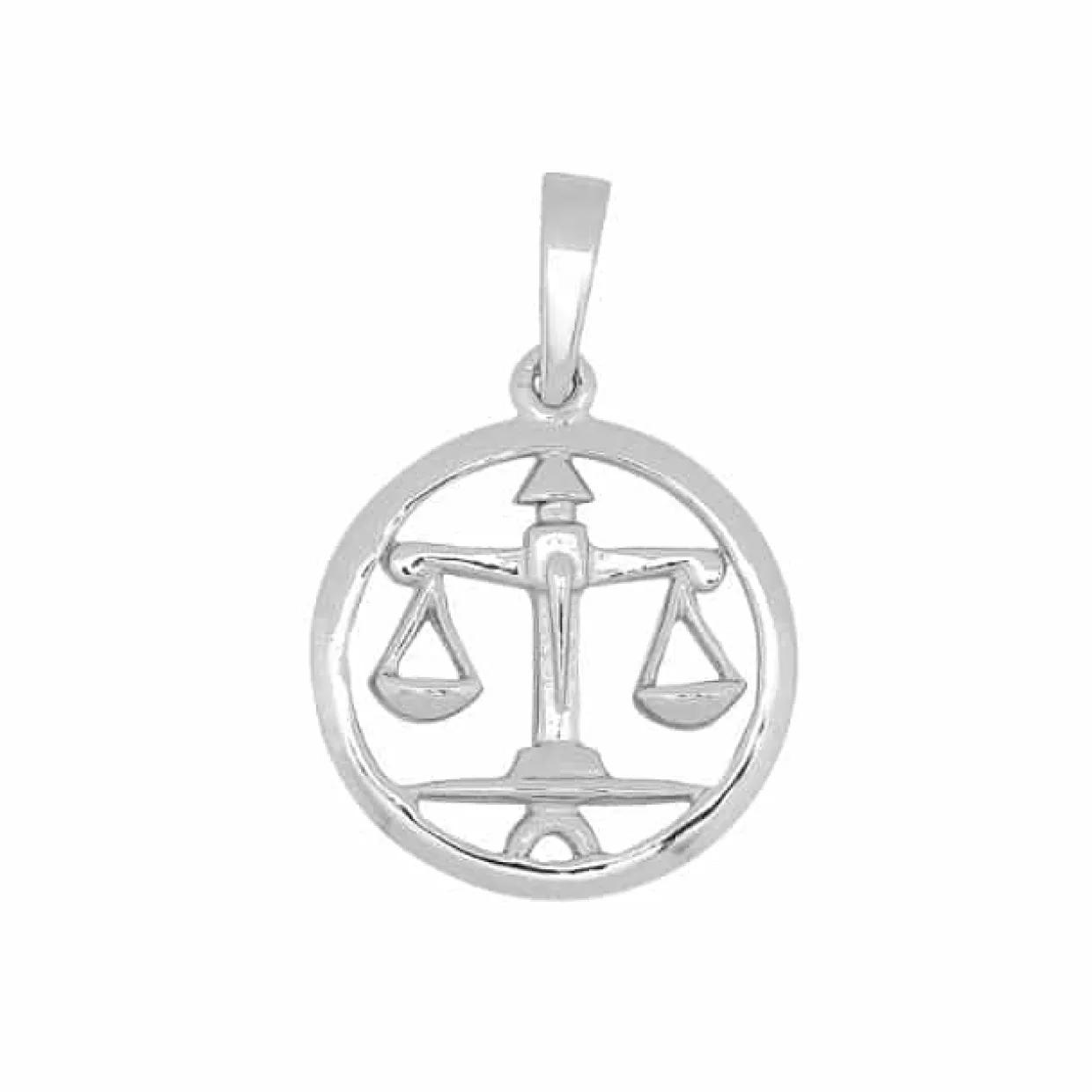 Sølv vedhæng stjernetegn med vægten. Vedhænget har en diameter på 15 mm og monteret med et patz øsken. Vedhænget er med blank oveflade og uden kæde.